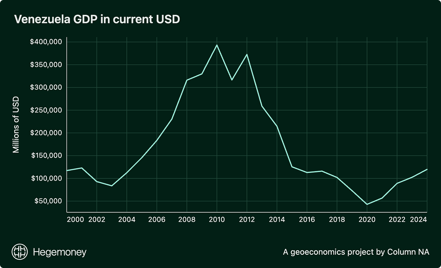 The Venezuelan economy has been in distress for quite some time, even before the most restrictive sanctions were imposed. Famously, in 2017 there were reports that citizens were breaking into the Maracaibo zoo to eat the animals because of food shortages. Eating stolen zoo animals should be a legitimate crisis indicator. At its peak, average annual inflation hit over 65,000 percent in 2018, according to the IMF. By the time OFAC designated PDVSA (the state-owned oil company) in 2019, Venezuela’s GDP had already fallen from a peak of $393B in 2010 to $102B at the end of 2018, according to World Bank data.